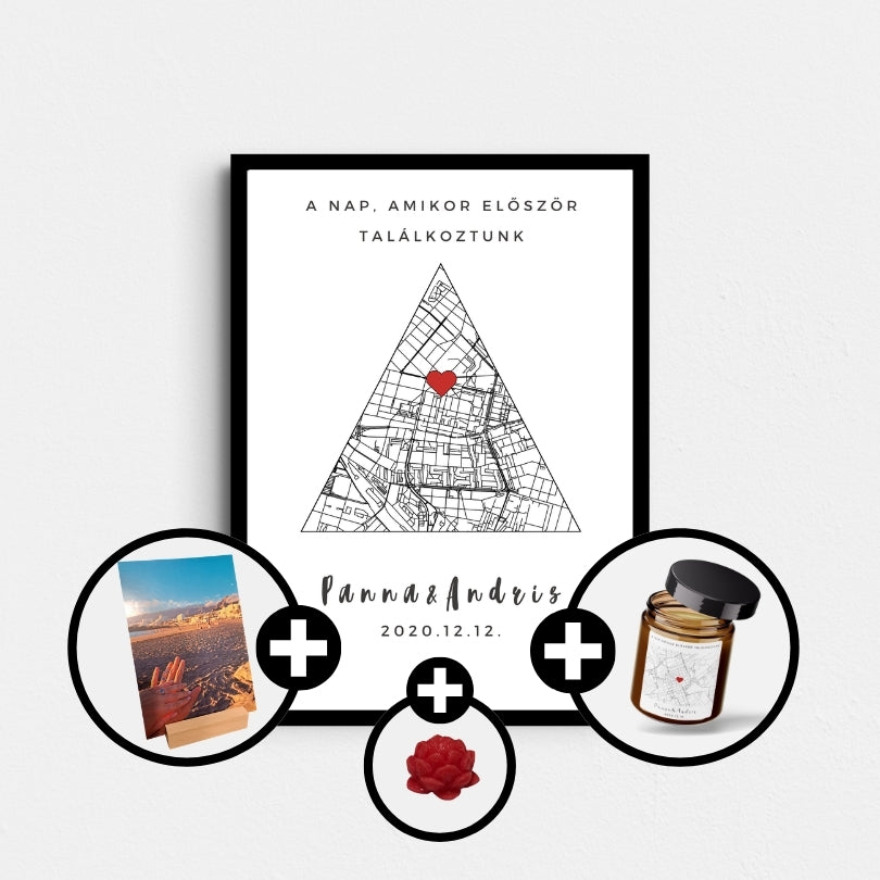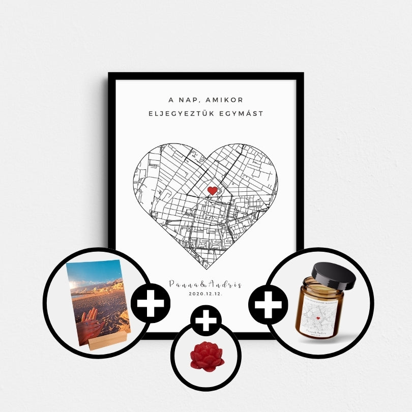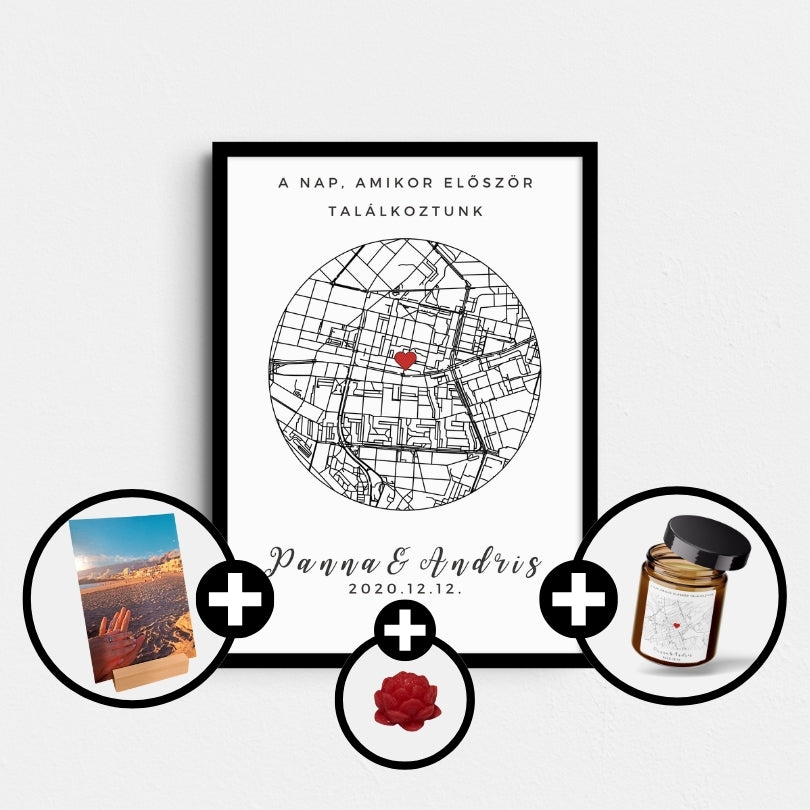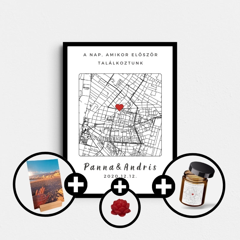 Pamatujete si místo, kde to všechno začalo? Zasnoubení, první schůzka nebo možná ten zvláštní den, kdy jste řekli své šťastné ano? Nyní máte možnost zachytit tyto okamžiky na srdečné mapové grafice a svíčce 🤩 Navíc ji můžete doplnit příjemným vonným voskem ve tvaru květiny a dřevěným držákem na obrázky, do kterého můžete umístit svůj oblíbený obrázek 📸