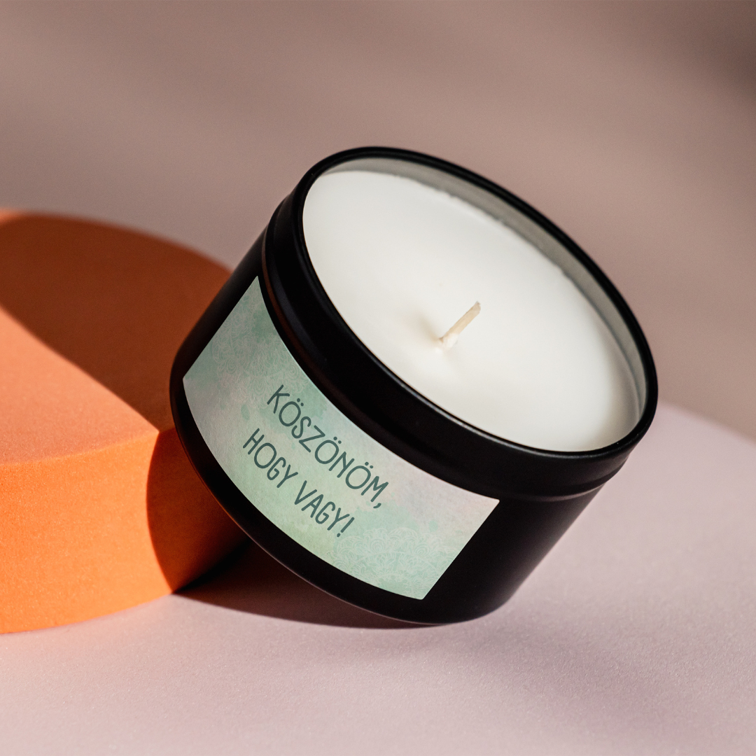 Maďarský výrobek vyrobený ručně a s láskou | sójový vosk | cca. 103 g | Vonná svíčka | V roztomilé černé kovové dóze