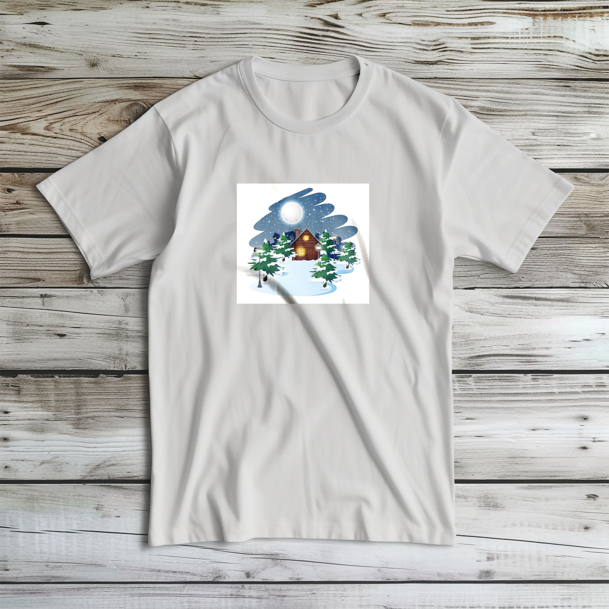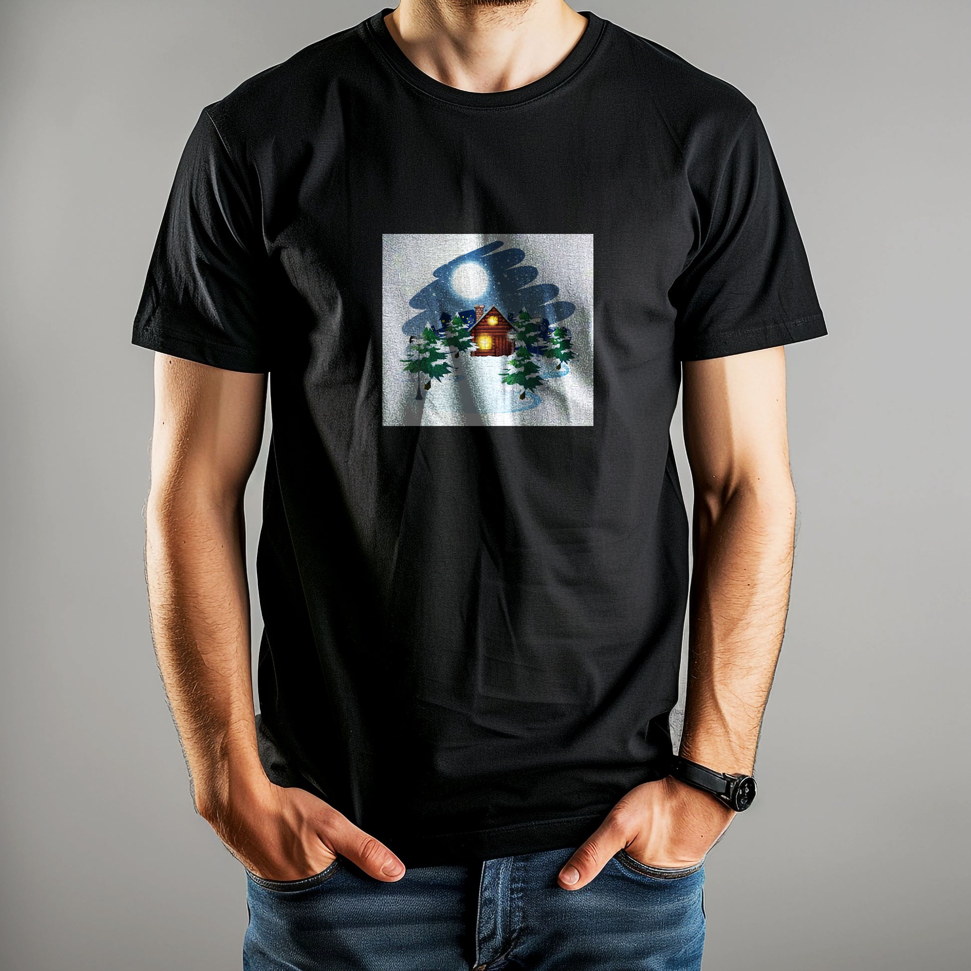 Dopřejte si kouzlo zimní krajiny s tímto okouzlujícím tričkem! Malebná chata zalitá měsíčním světlem a zasněžené stromy okamžitě navodí klidnou, hřejivou atmosféru – jako byste vstoupili do zimní pohádky. Ideální volba na chladné dny, kdy se chcete obklopit kouzlem zimy. ❄️