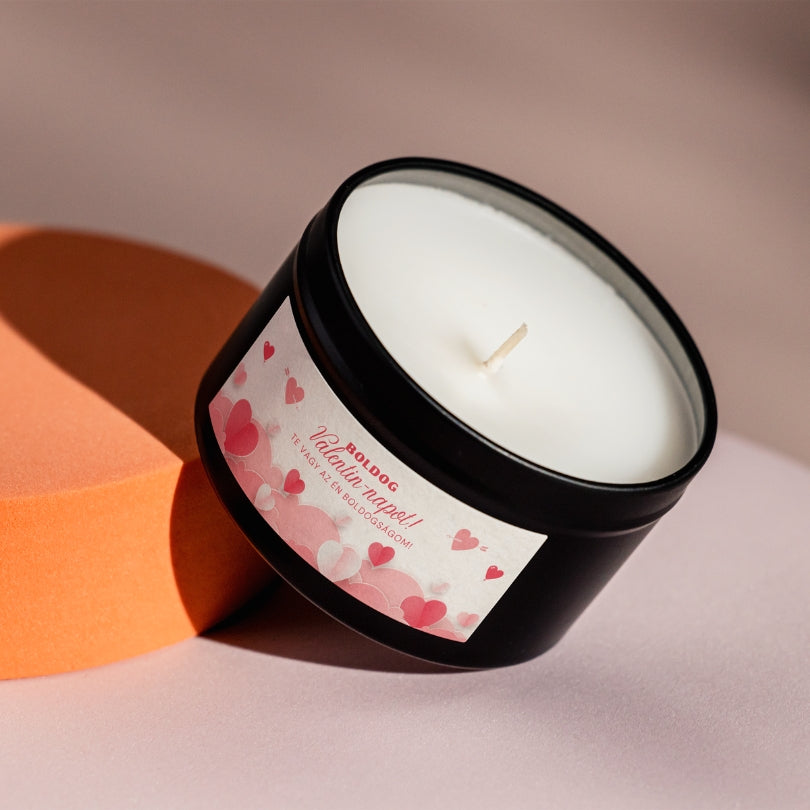 Personalizovaná svíčka na Valentýna v černé kovové dóze