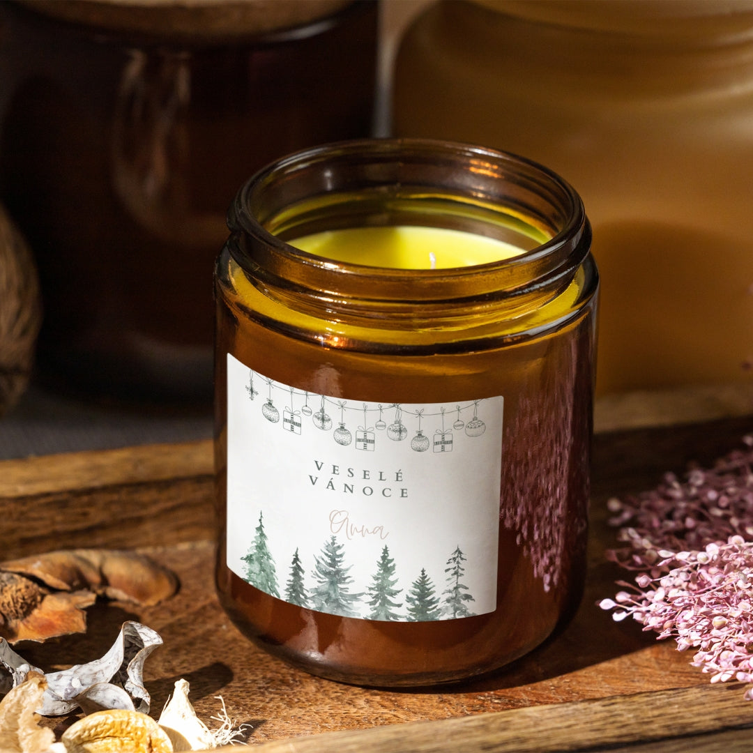 💌 Personalizace – svíčka nese nápis „Veselé Vánoce!“, ale můžeš zadat jakýkoli text, který si přeješ mít na etiketě.