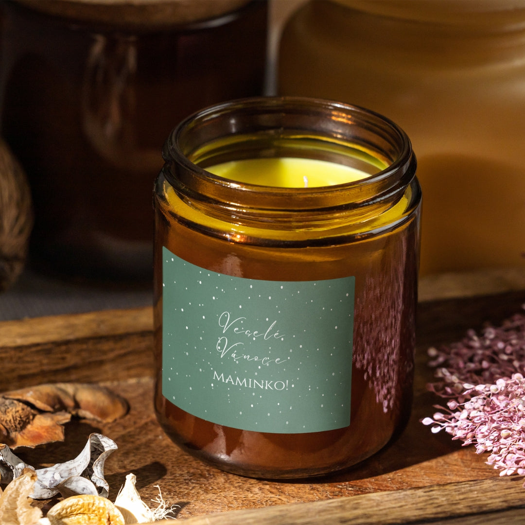 💌 Personalizace – svíčka nese nápis „Veselé Vánoce!“, ale můžeš zadat jakýkoli text, který si přeješ mít na etiketě.