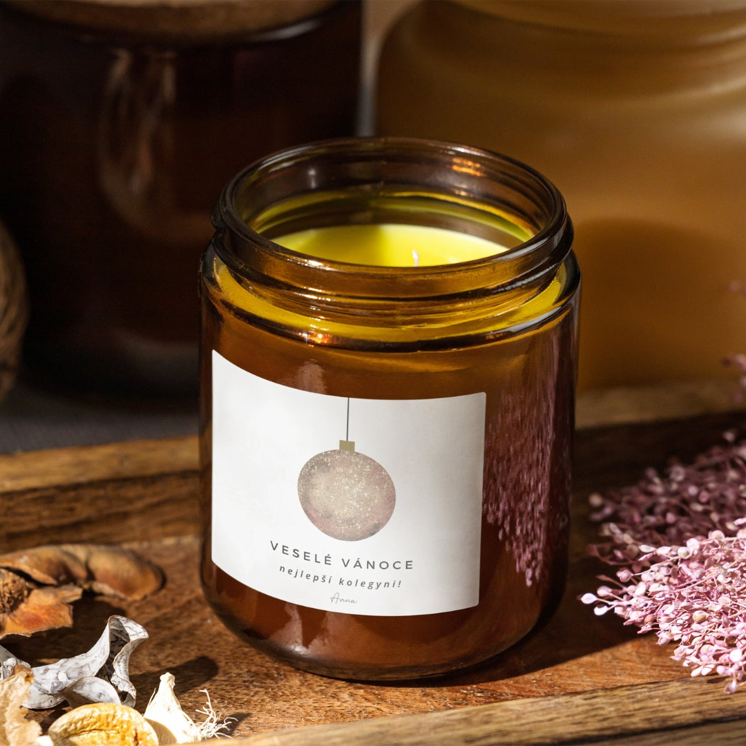 💌 Personalizace – svíčka nese nápis „Veselé Vánoce!“, ale můžeš zadat jakýkoli text, který si přeješ mít na etiketě.