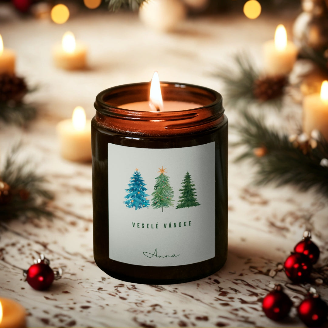 💌 Personalizace – svíčka nese nápis „Veselé Vánoce!“, ale můžeš zadat jakýkoli text, který si přeješ mít na etiketě.
