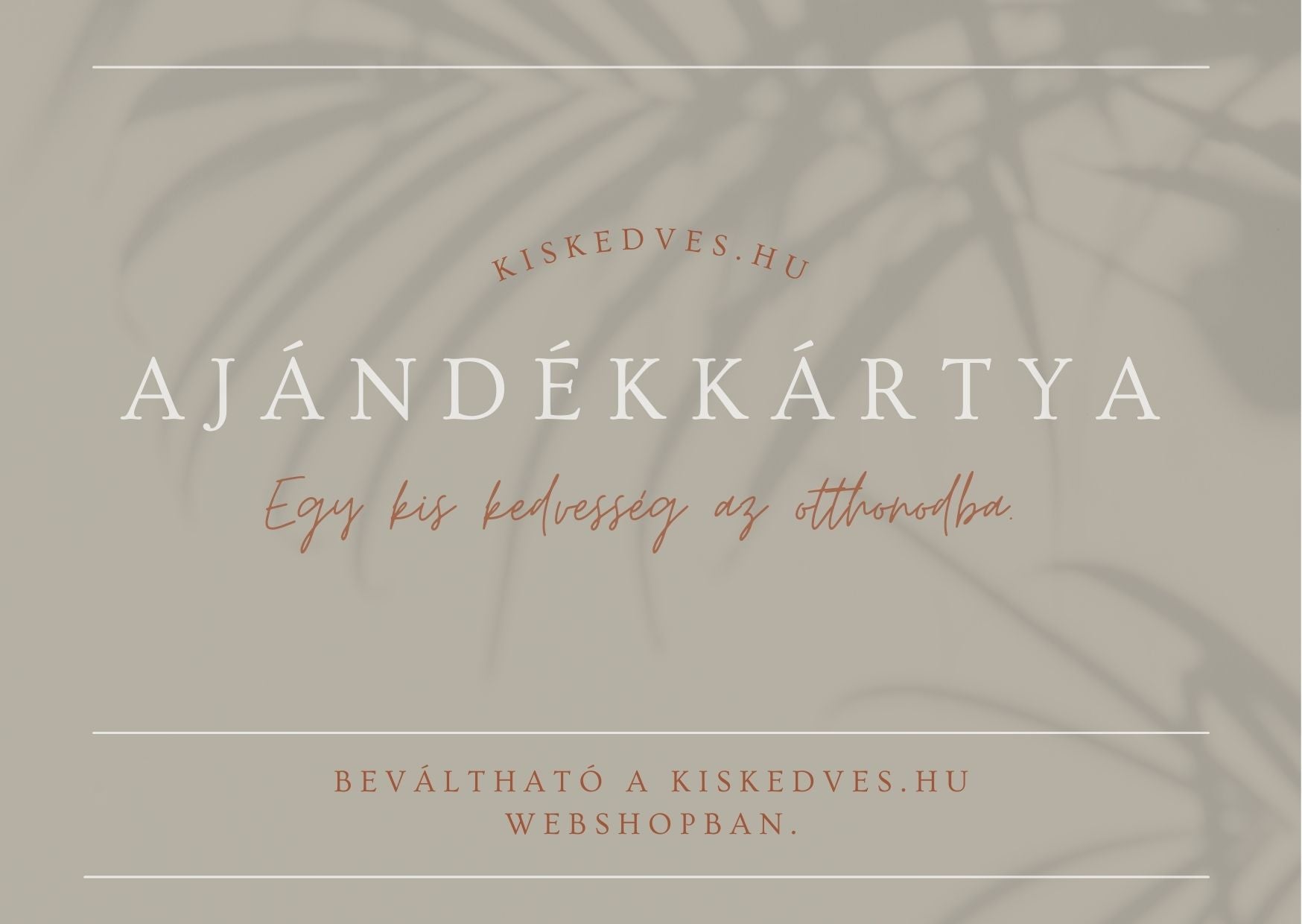 Darujte okamžitou magii s elektronickou dárkovou kartou Kiskevedes! Vyberte částku a přidejte svůj vzkaz, aby byl dárek skutečně osobní. Ať je to dar radosti, tepla a lásky.